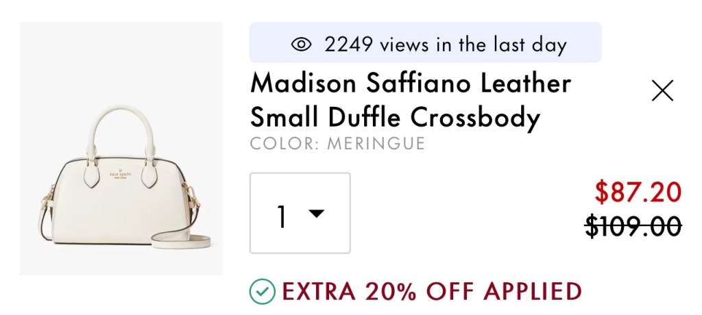 Normally priced at $349, this handbag is currently sitting at $109 which is 69% OFF. When added to cart, you can use code SELECT20 to bring the price down even further to $87.