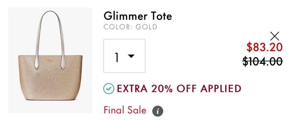 This Glimmer Tote normally priced at $359 is currently sitting at $104, which is 71% off. Using code SELECT20 brings the price down to $83!