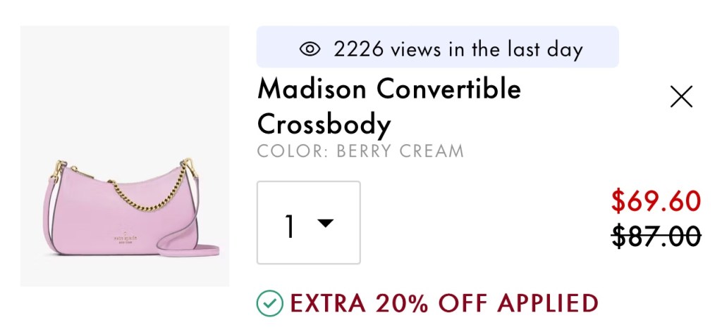 This crossbody is normally priced at $329, but is currently sitting at $96 making it 71% off. Code SELECT20 makes this crossbody only $76!