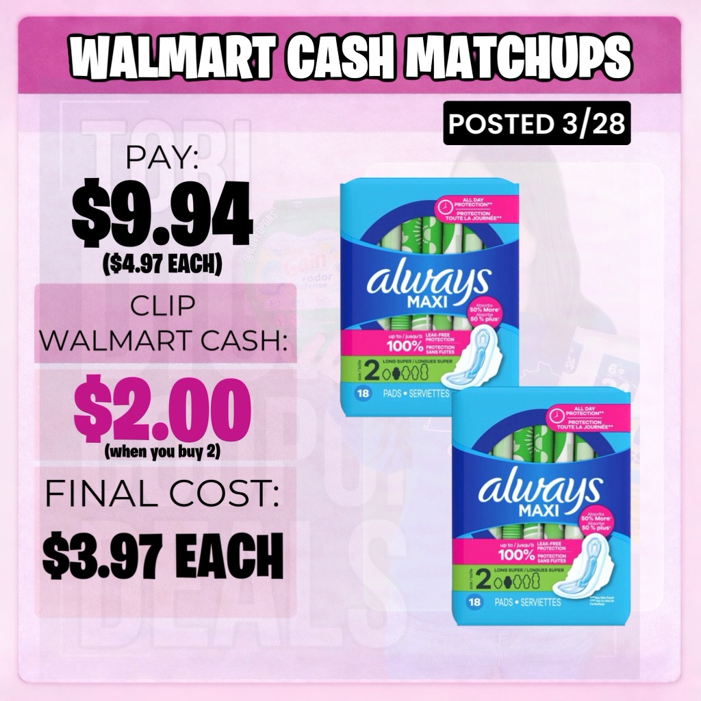 • Walmart Cash: $4.00 (must buy 2)